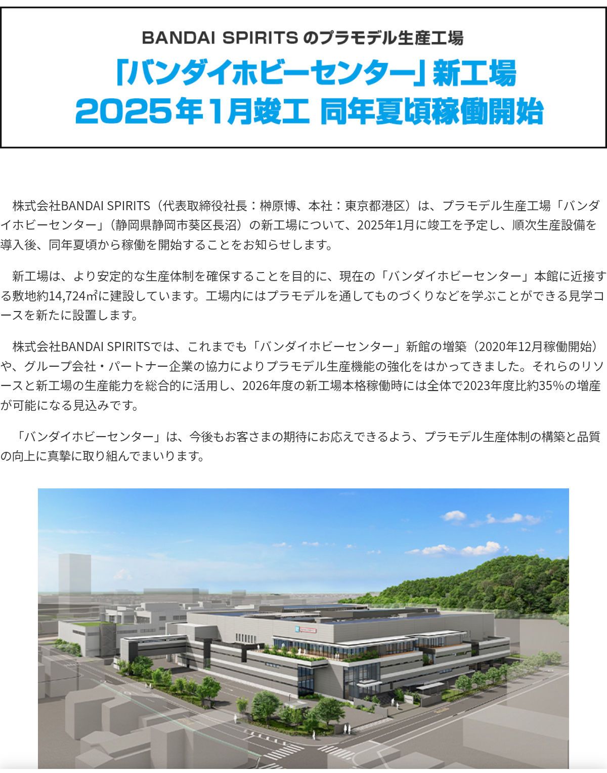 バンダイ新工場