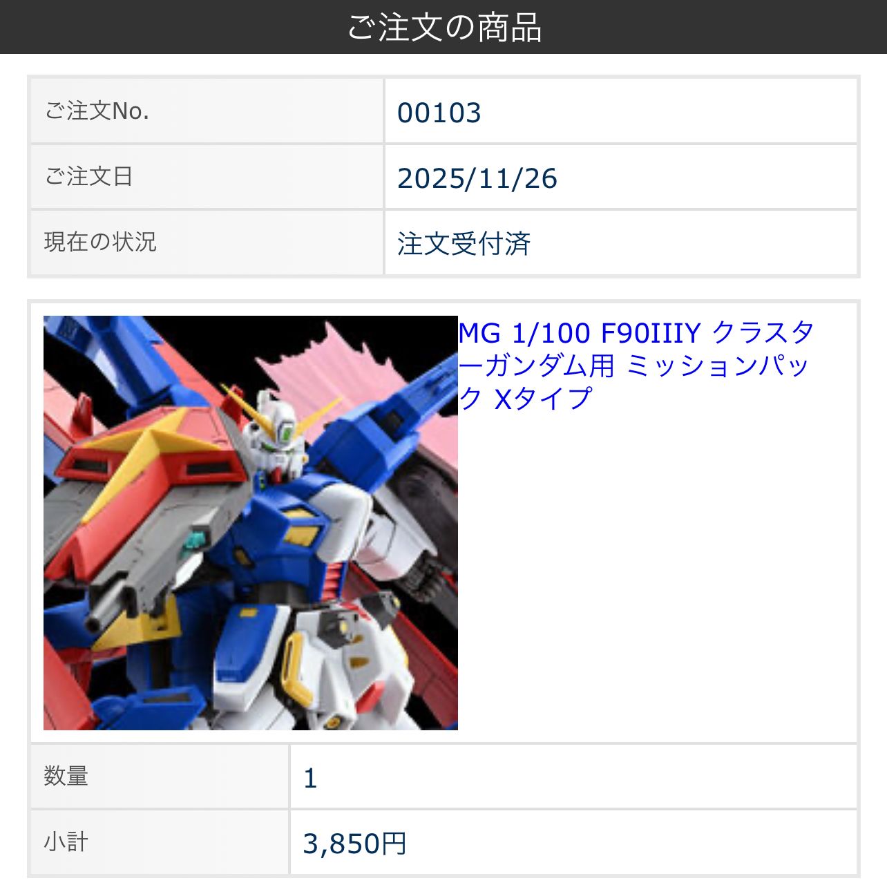 クラスターガンダム買ってる人しか注文しないからか…