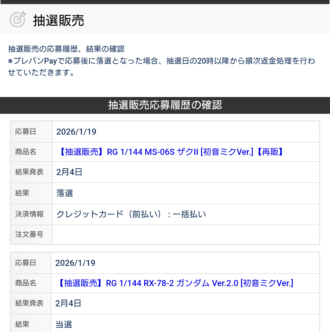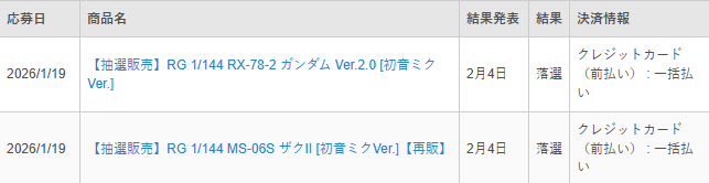 『【ガンプラ】RGガンダムver2.0初音ミクカラーの当選発表!みんなは結果どうだった?』へのコメント